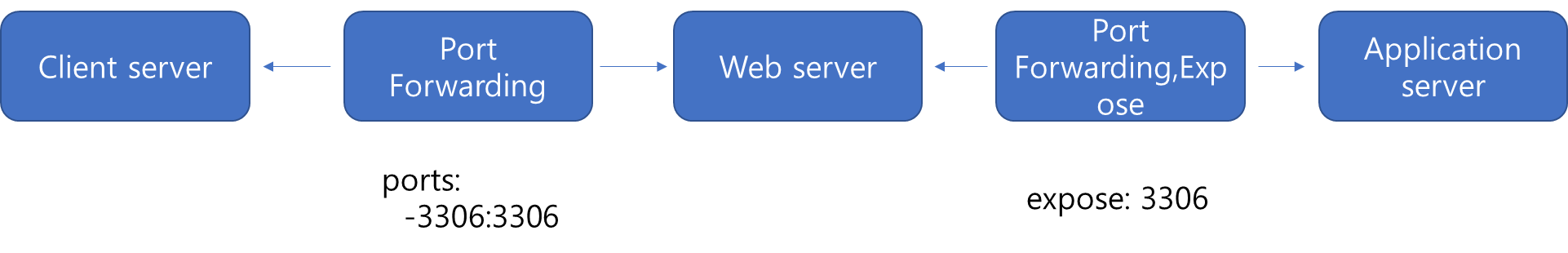-expose: 호스트 운영체제와 직접 연결하는 포트를 구성하지 않고 포트를 노출하는데 필요하면 링크로 연결된 서비스와 서비스 간의 통신만 허용