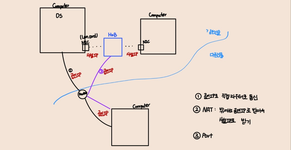 전용선을 사용하지 않고 통신 회사의 라우터를 이용해서 인터넷을 사용하는 경우 통신 회사에서는 라우터에 몇 개의 IP만 할당하고 각 개인에게는 Port Forwarding 이라는 기술로 분배해서 사용하는 경우에 할당됩니다.