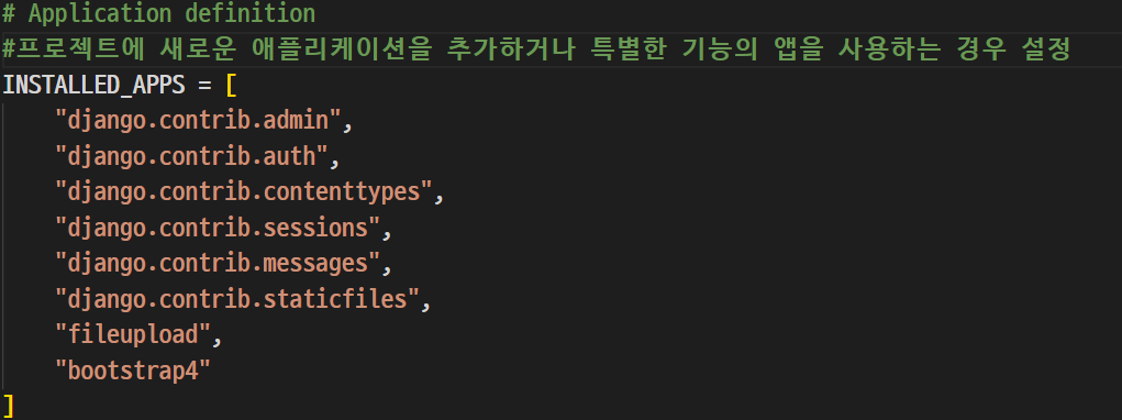 =>프로젝트의 settings.py 파일에 파일을 저장하기 위한 옵션을 추가