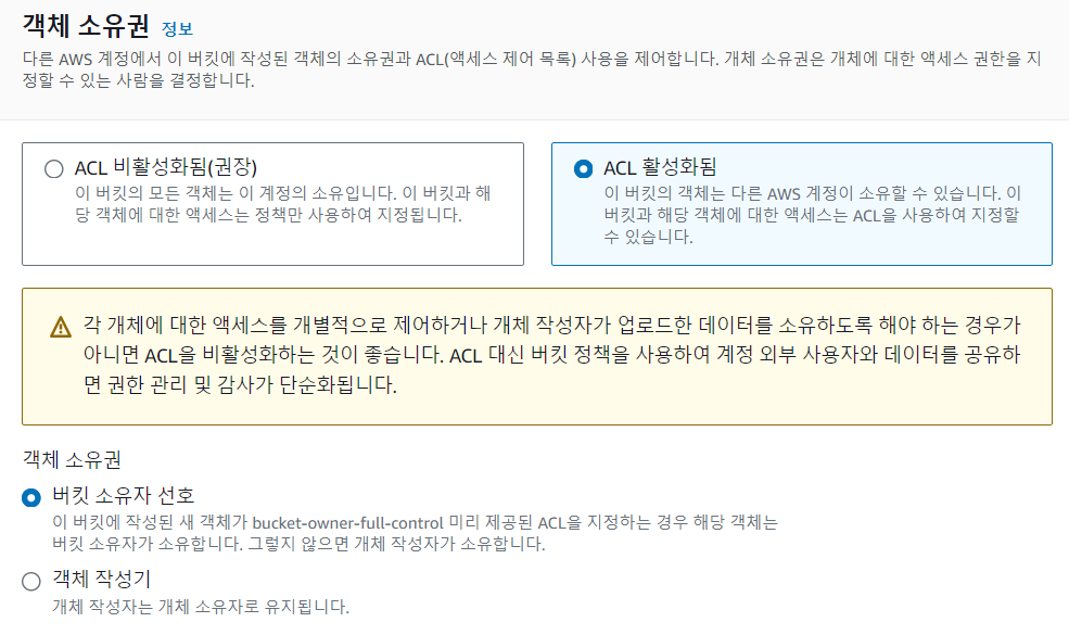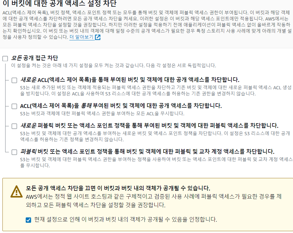 2)버킷을 외부에서 사용할 수 있도록 설정