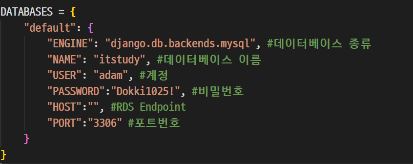 2)데이터베이스 및 환경 설정 - project 의 settings.py 파일을 수정