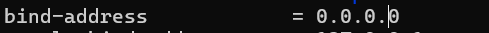 로 환경 설정 파일을 열어서 bind-address= 0.0.0.0 으로 설정