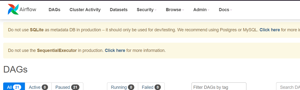 2)도커에서 DAG실행(웹 서버는 기본적으로 8080을 사용)
