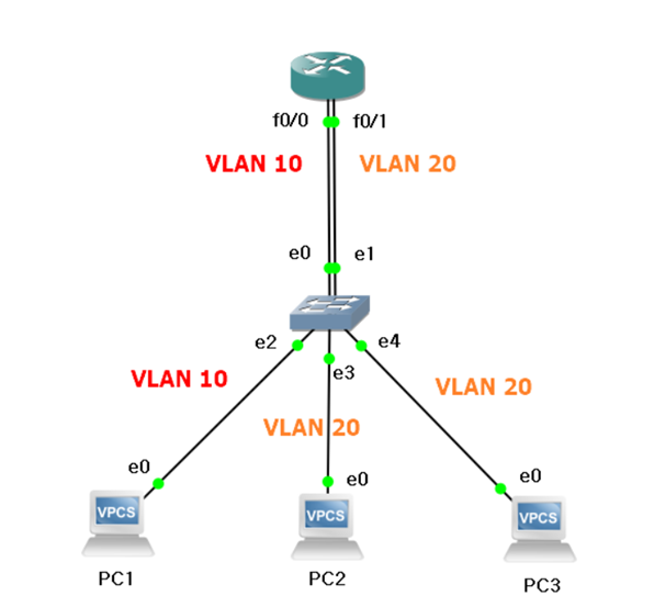 위의 그림에서 PC1 이 연결된 스위치의 e2포트는 VLAN이 10이므로 동일한 VLAN 10이 설정된 포트로만 브로드캐스트를 전달할 수 있습니다. 위의 그림에서는 e0로만 전달할 수 있습니다. PC2와 PC3 f0/1포트로 브로드캐스트를 전달할 수 있어 직접적으로 통신할 수 있습니다. 만약 PC1과 PC2가 통신을 하려면 라우터 혹은 L3 스위치를 통해 이동해야합니다