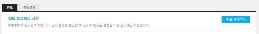 위에 같이 생성하시면 [프로젝트이름] 에 설정해두신 이름이 뜨실텐데 이를 클릭하시고 [빌드 시작하기]를 누르시면 빌드가 시작됩니다. 빌드가 제대로 되고 있는지는 [작업결과]를 통해 확인하실 수 있습니다. 여기서 로그를 통해 오류를 확인하거나 제대로 빌드되고 있는지 파악할 수 있습니다.