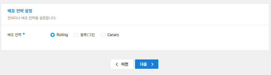 - 하면 배포 전략에 따라 3가지 버튼이 뜹니다.