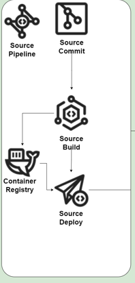 저는 크게 [Source Commit] => [Source Build] => [Source Deploy] 를 통해 CI/CD 을 구축했고 이를 [Source Pipeline]을 통해 pipeline 을 구축했습니다. 아래는 제가 구축했던 파이프라인의 구조도입니다.