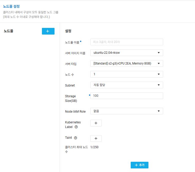 3)Node pool 설정