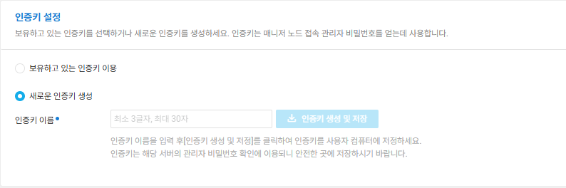- 인증키가 있으시면 원래꺼 사용하시고 없으시면 생성하면 됩니다.