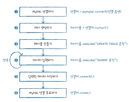 파이썬에서 이 그림의 순서대로 DB을 구축하고 사용해보겠습니다.