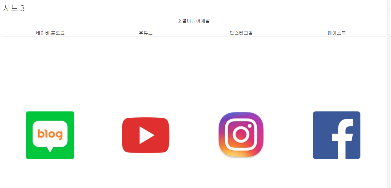 =>소셜 미디어 채널 URL 시트를 가져오기