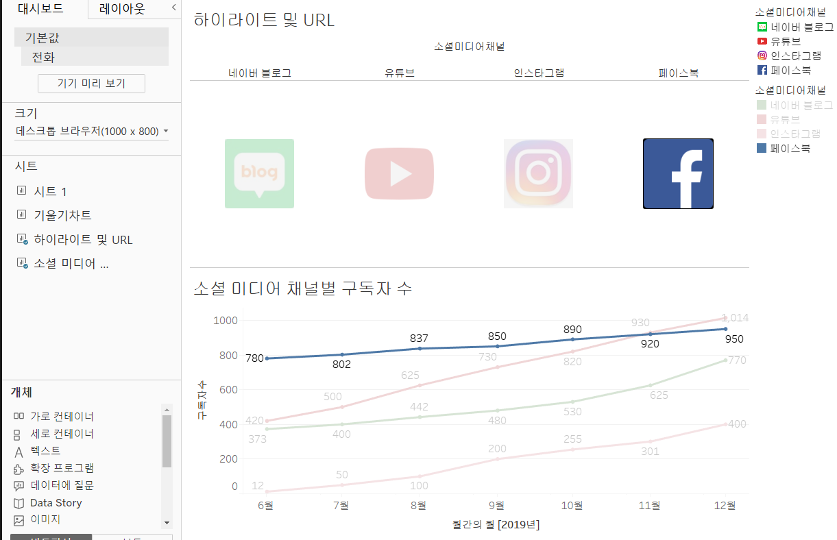 =>시트에서 마크를 모양으로 변경하고 [소셜 미디어 채널] 필드를 모양 마크에 배치
