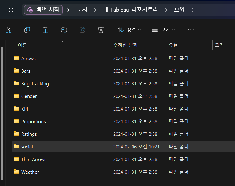 /MyDocuments/My Tableau Repository/Shapes(모양) 디렉토리에 디렉토리를 만들어서 저장하면 아이콘을 사용하는 것이 가능