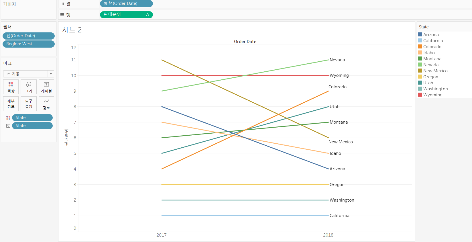 =>[판매 순위]의 추가메뉴를 눌러서 [다음을 사용하여 계산]에서 State으로 변경