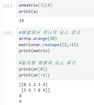 =>일차원 배열의 경우는 배열명[인덱스]의 형태로 접근하는데 앞에서 부터 접근할 떄는 0부터 시작하고 맨뒤에서 접근할때는 -1,-2 이런식으로 접근