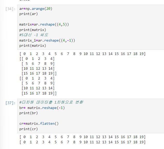 =>차원을 변경하는데 사용하는 함수는 reshape와 flattern