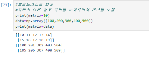 =>배열과 하나의 데이터와 연산을 하면 배열의 모든 데이터를 순회하면서 데이터와 연산을 수행합니다