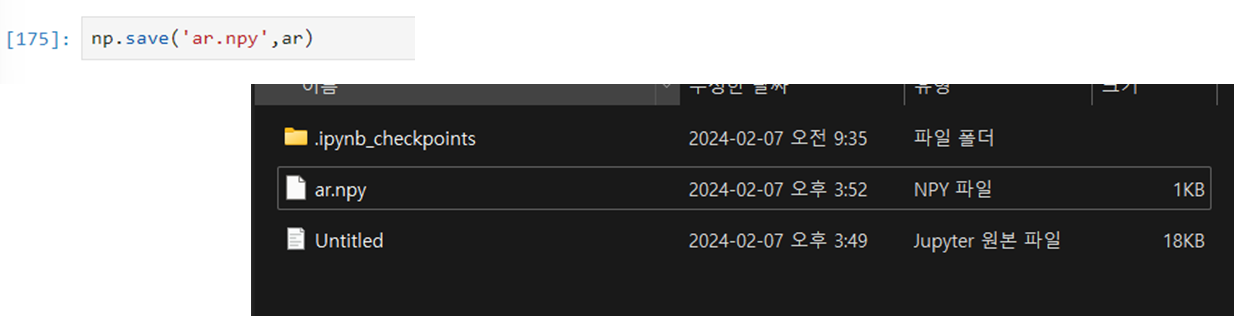 numpy.save('파일경로', 배열)