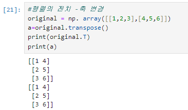 =>행렬은 T라는 속성으로 전치 가능