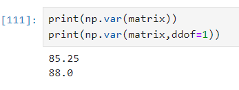 표준편차와 분산은 ddof 옵션에 따라 값이 다르게 나오는데, 표준편차와 분산은 평균이라는 통계값을 가지고 구하게됩니다.