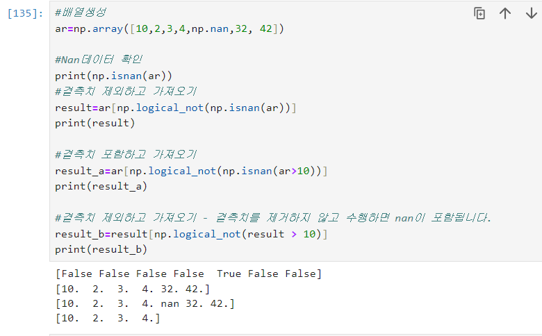=>numpsy.isnan(배열):배열에None, Null등이 포함여부를 return