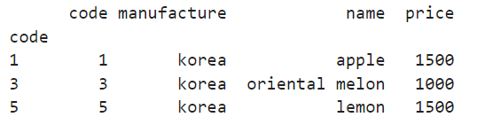 =>bool 타입의 Series을 대입하면 True인 행 만 선택