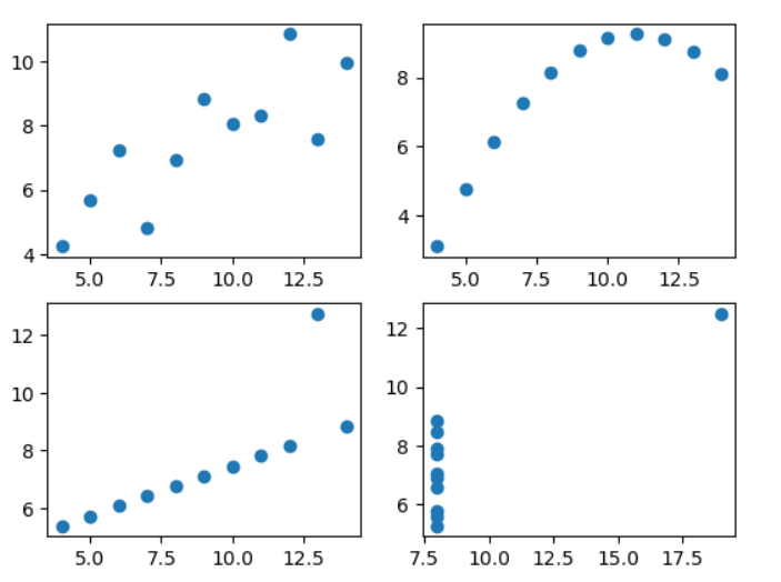 =>엔스콤 데이터의 각 데이터 세트의 기술 통계랑이 거의 유사