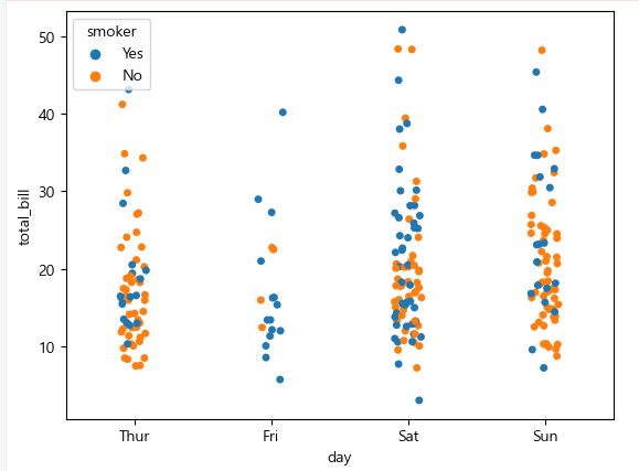 stripplot:두께가 아니라 점으로 데이터의 밀집 형태를 표시(점이 겹침)