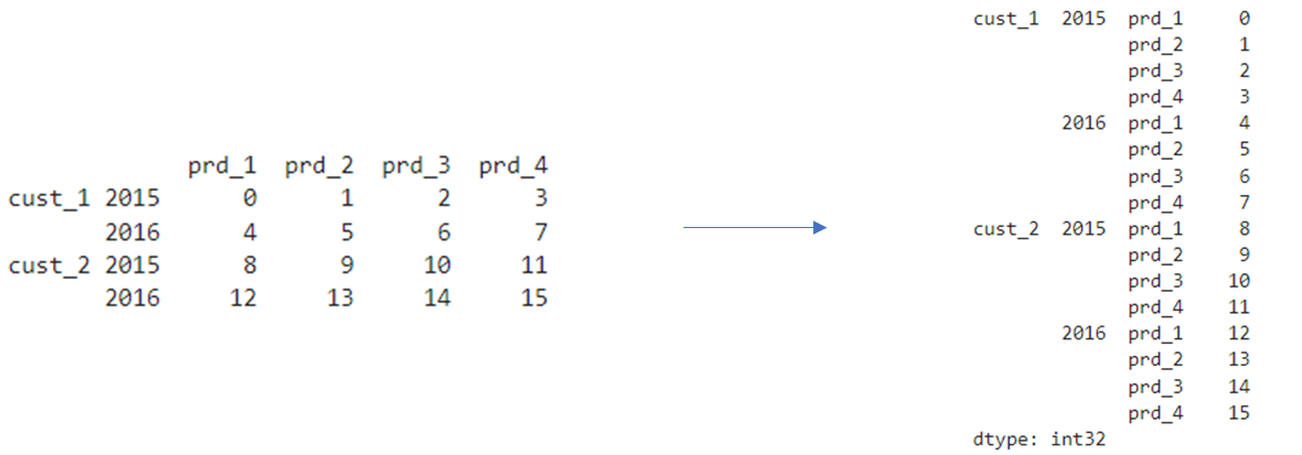 data=pd.DataFrame(data=np.arange(16).reshape(4,4),index=mul_index,columns=['prd_1','prd_2','prd_3','prd_4'],dtype="int")