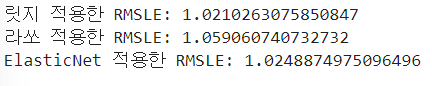 =>각 모델 별 RMSLE 값 구하기