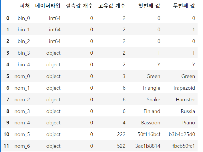 =>경진대회 이름: 범주형 데이터 이진 분류