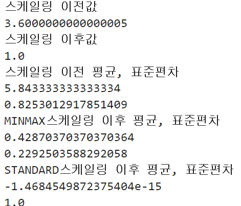 print("STANDARD스케일링 이후 평균, 표준편차")