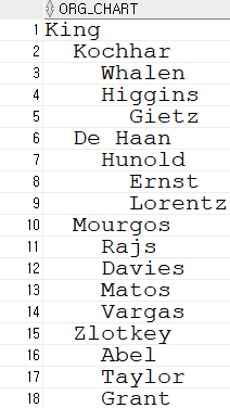 select LPAD(last_name,LENGTH(last_name) + (LEVEL*2)-2,'_') AS org_chart