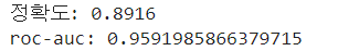 roc = roc_auc_score(y_test,pred_probs)# roc_auc 줄때는 확률을 줘야함