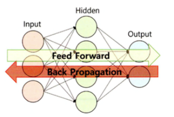 =>Input 에서 Weight 을 계산하고 Hidden layer를 거쳐서 Output를 만들어내는데 이과정을 Feed Forward 라고 합니다.