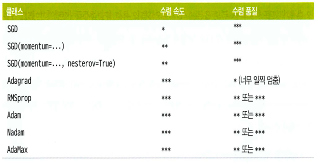 =>Adagrad, RMSProp, Adam, Nadam 등의 옵티마이저가 추가